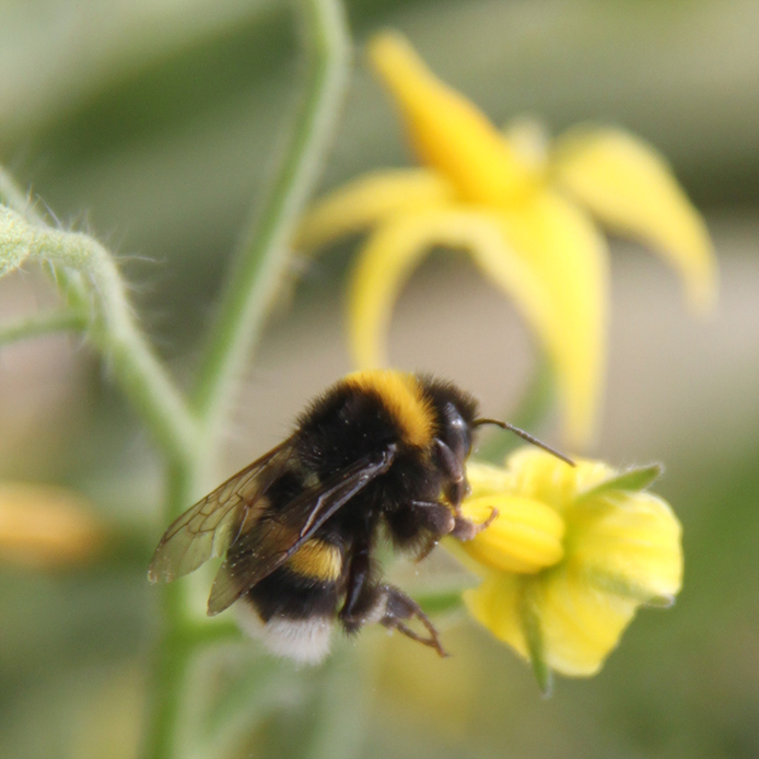 溫室番茄熊蜂授粉,熊蜂授粉替代人工點花,省時省工,生產(chǎn)出來的果實品質(zhì)好,果形周正,提高了產(chǎn)量,增加了收益。